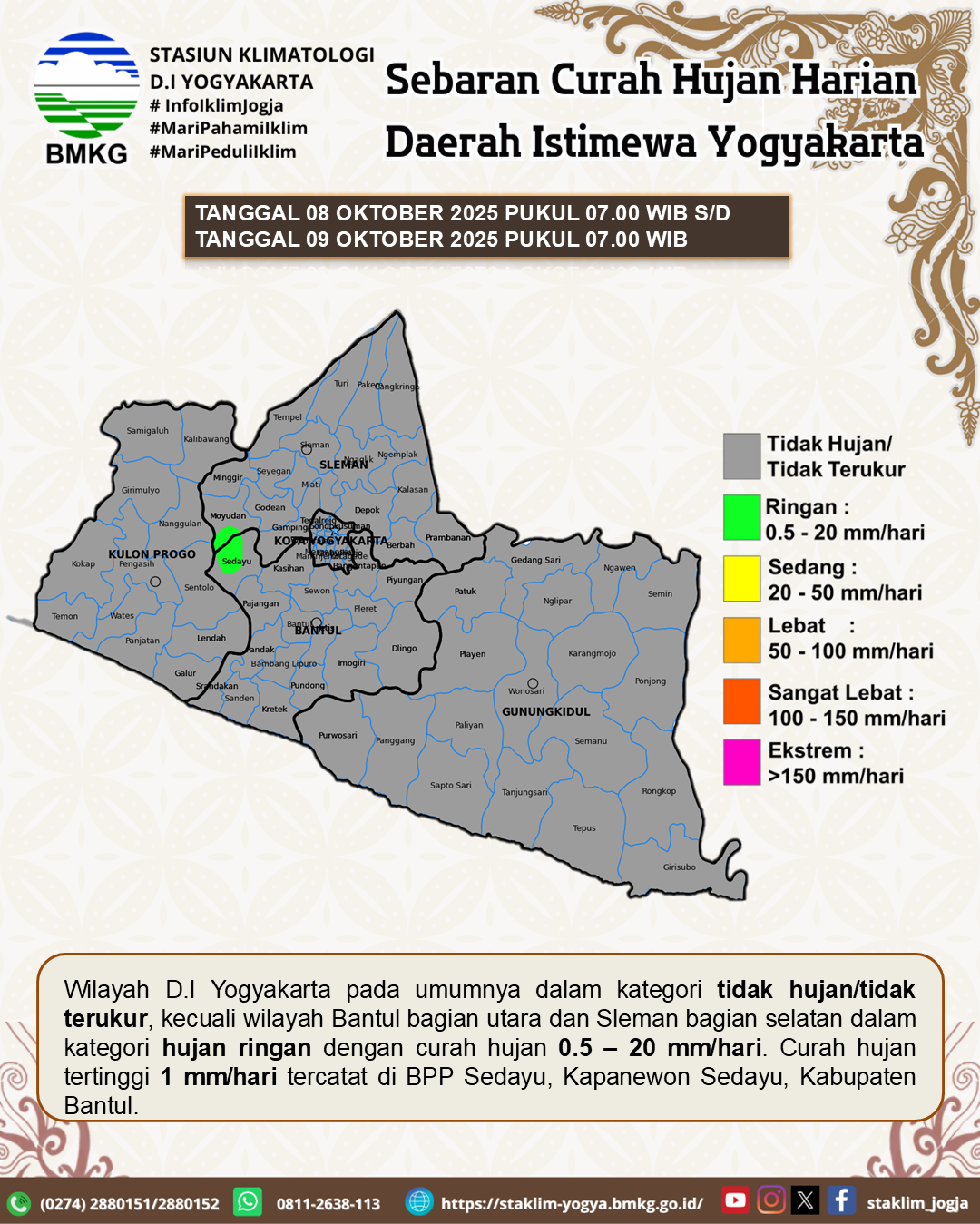 Analisis Curah Hujan Harian 09 Oktober 2025