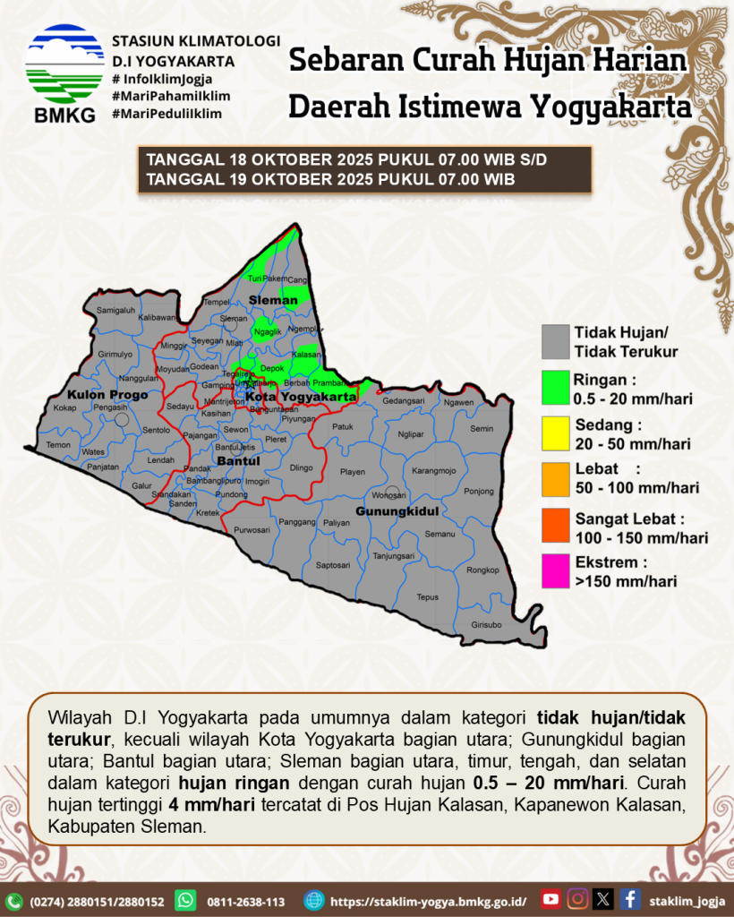 Analisis Curah Hujan Harian 19 Oktober 2025