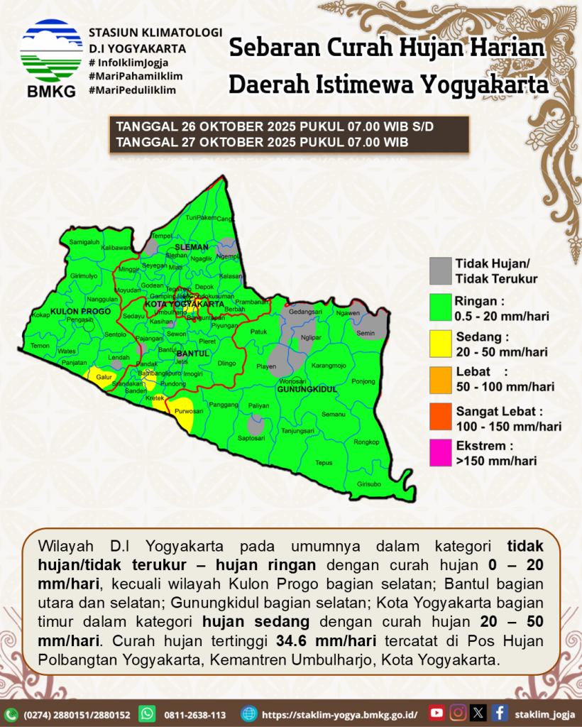 Analisis Curah Hujan Harian 27 Oktober 2025