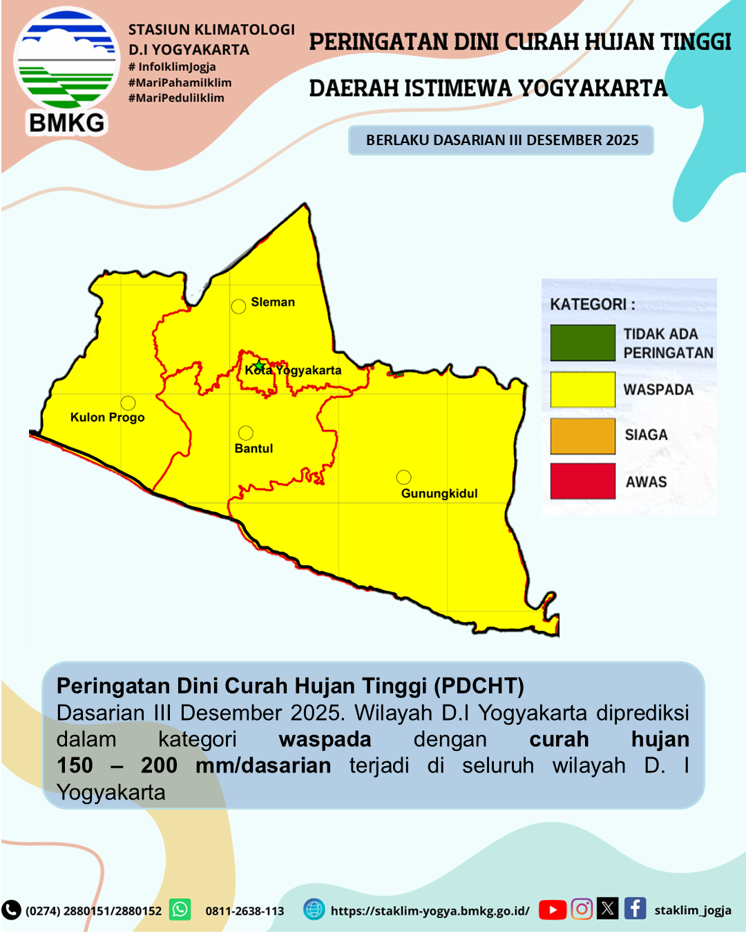 Peringatan Dini Curah Hujan Tinggi Dasarian III Desember 2025