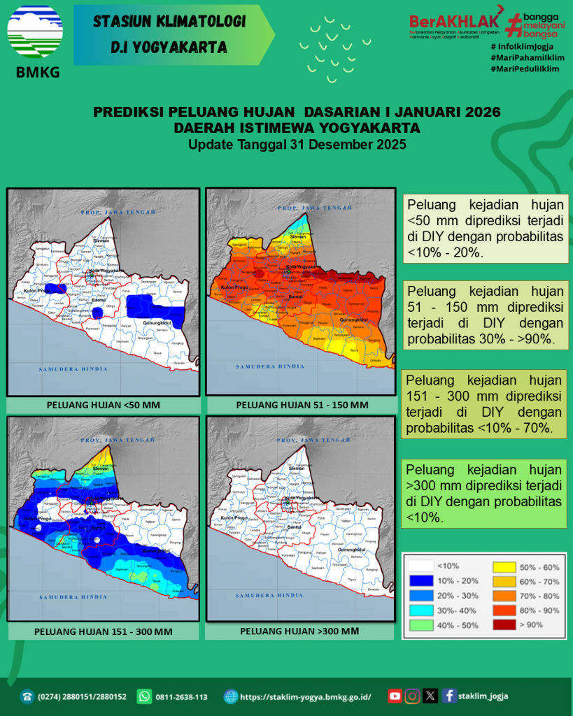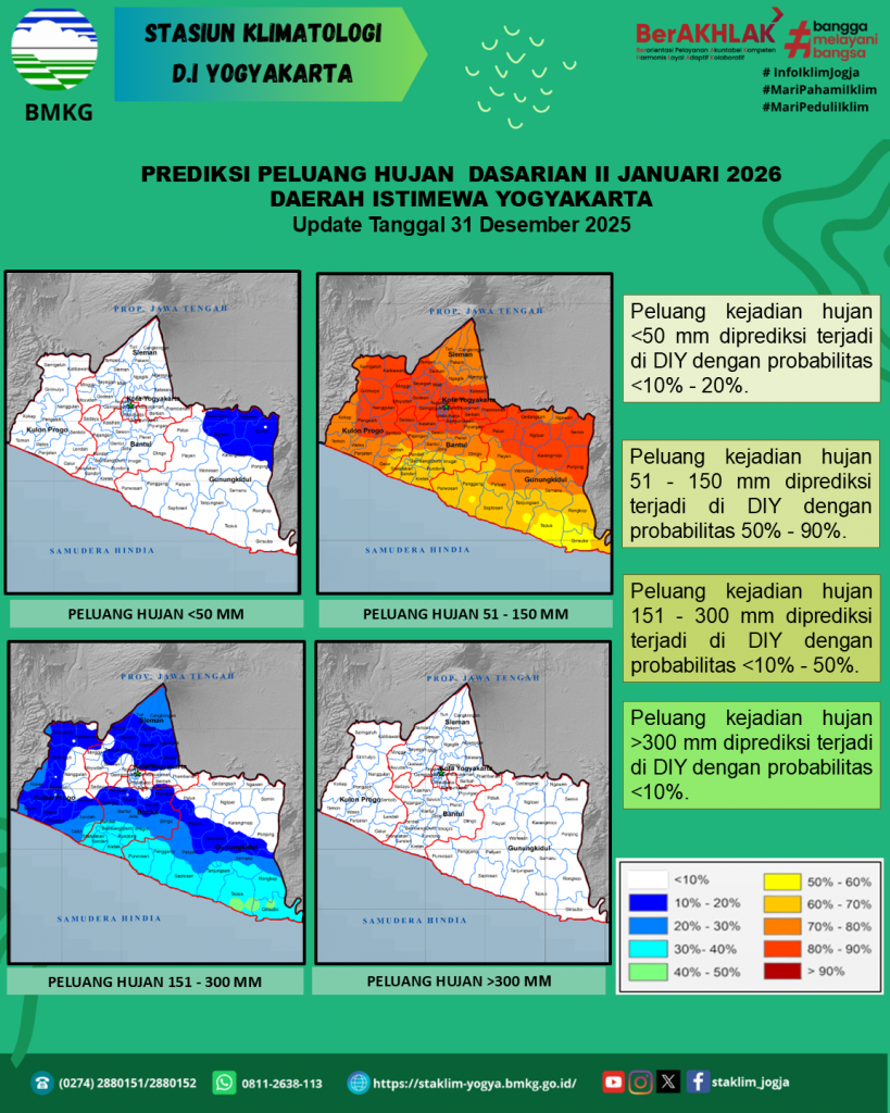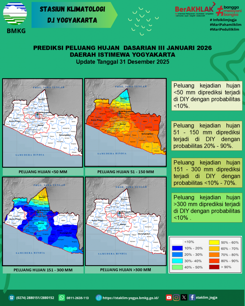 Prediksi Peluang Curah Hujan Dasarian Update 31 Desember 2025