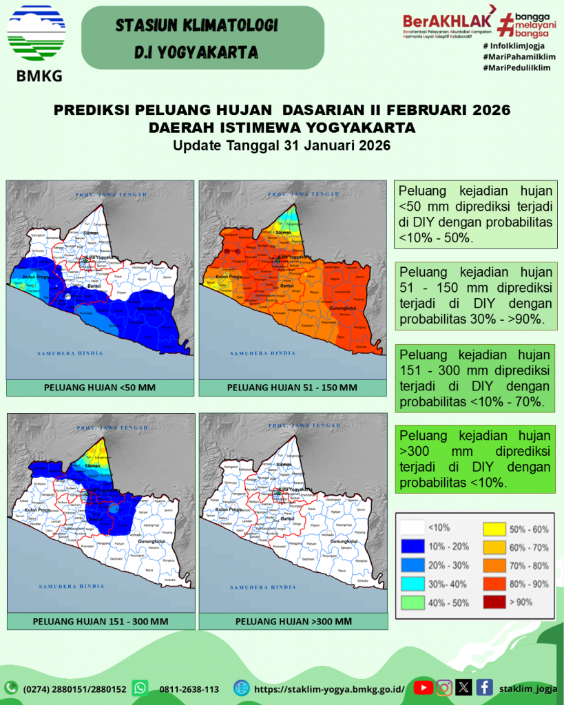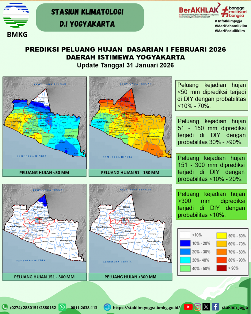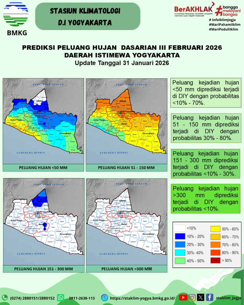 Prediksi Peluang Curah Hujan Dasarian Update 31 Januari 2026