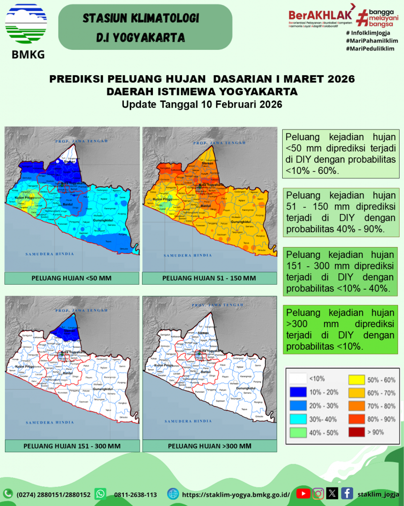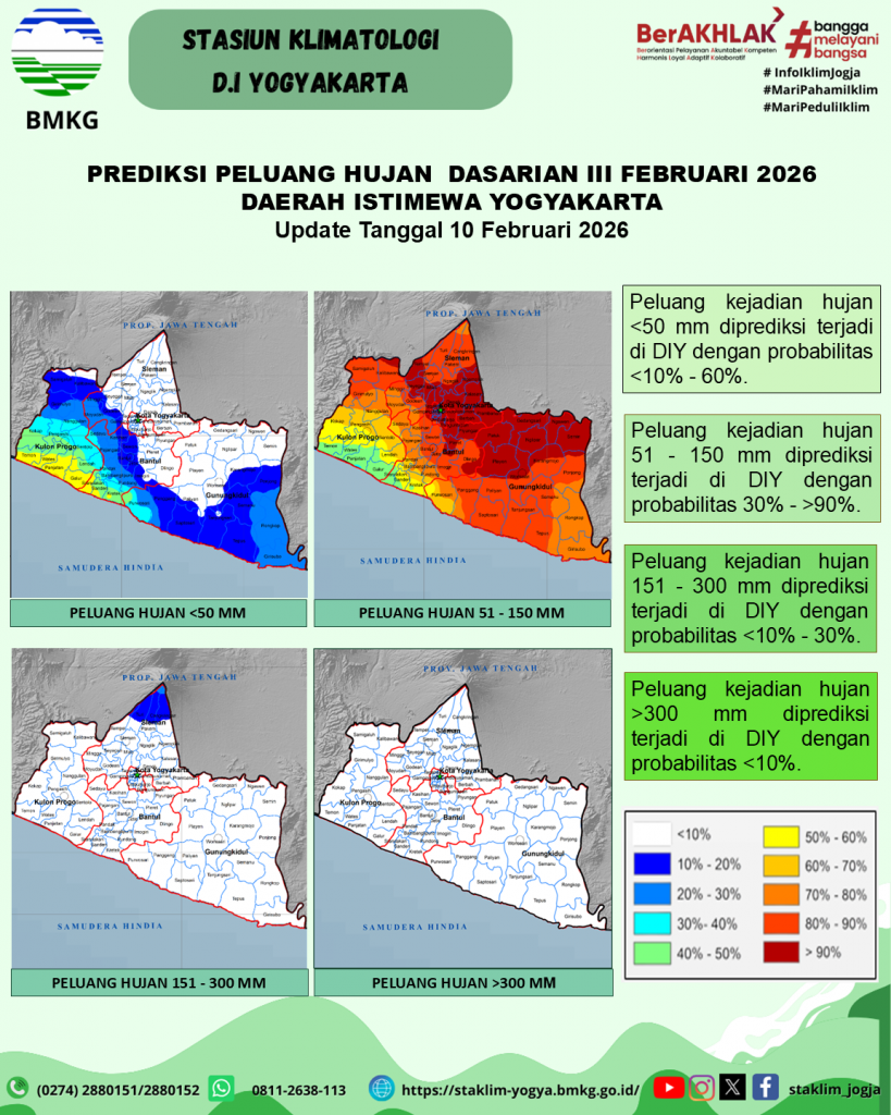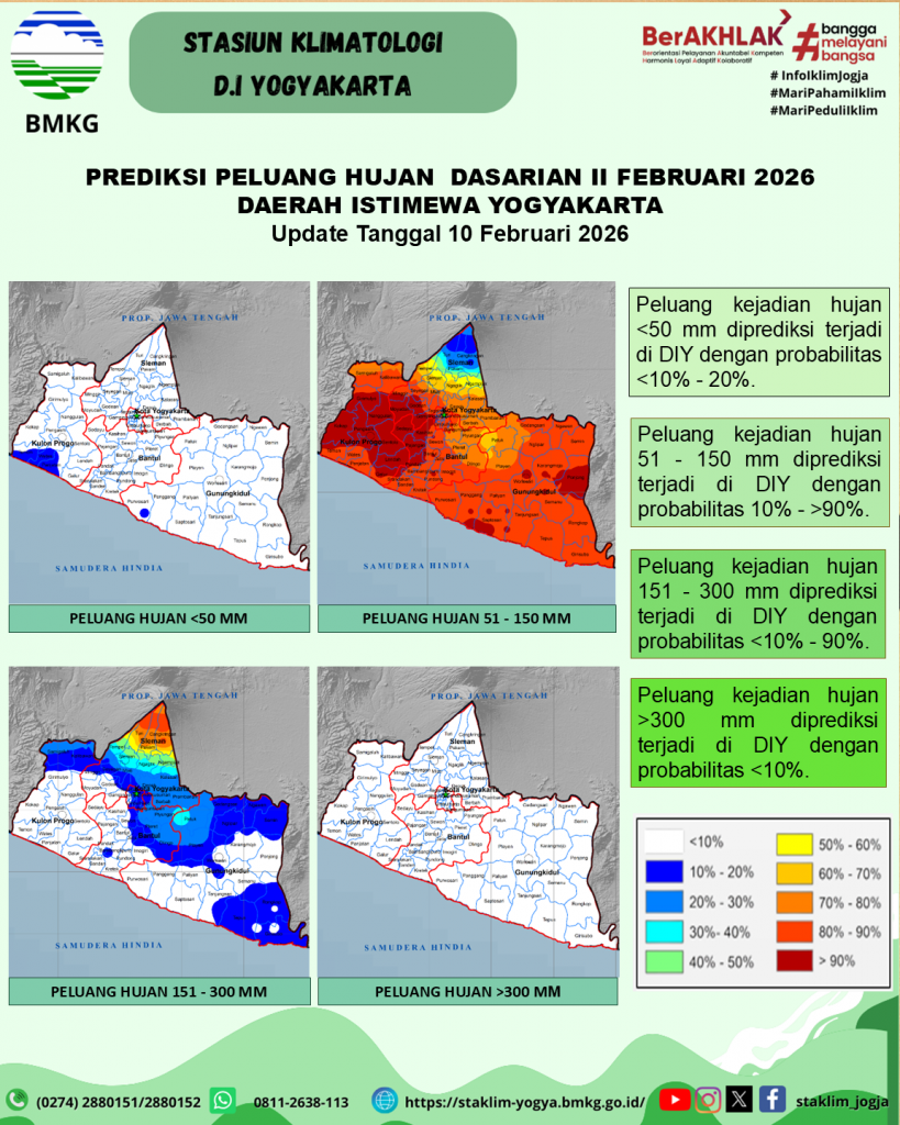 Prediksi Peluang Curah Hujan Dasarian Update 10 Februari 2026
