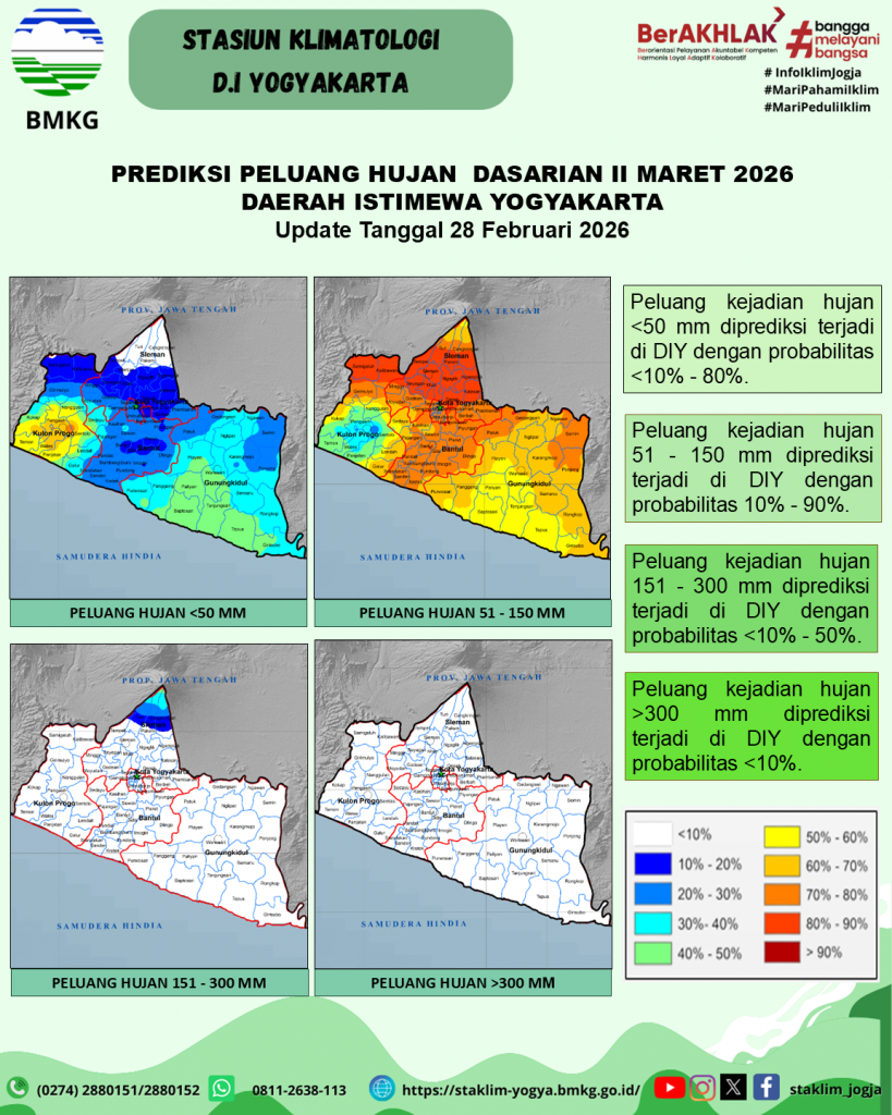 Prediksi Peluang Curah Hujan Dasarian Update 28 Februari 2026