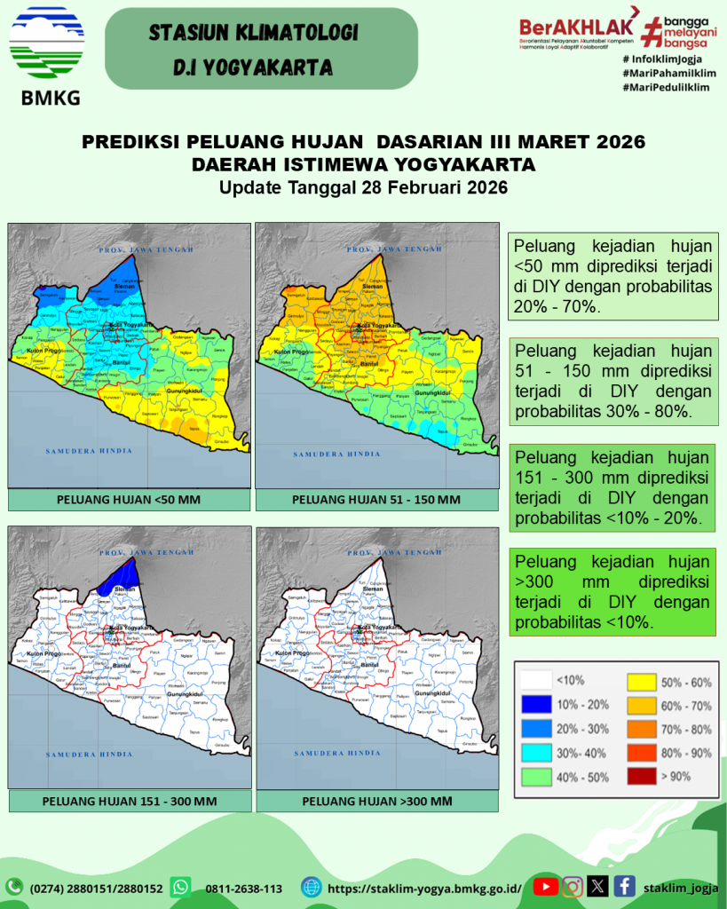 Prediksi Peluang Curah Hujan Dasarian I - III Maret 2026