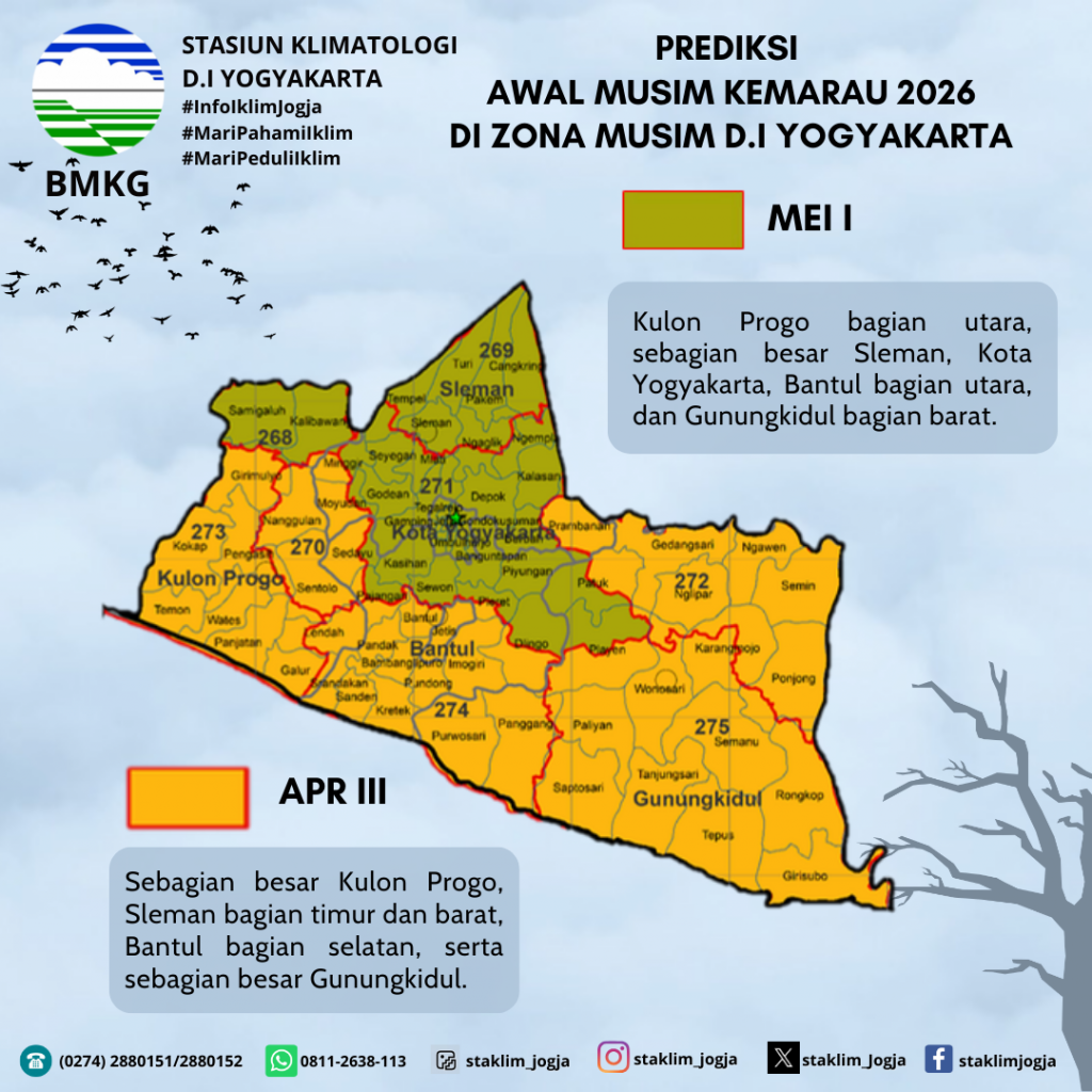Prediksi Akhir Musim Kemarau 2026 Zona Musim D.I Yogyakarta