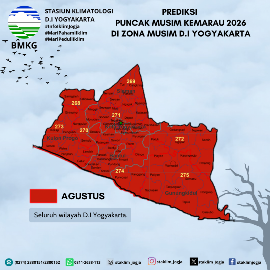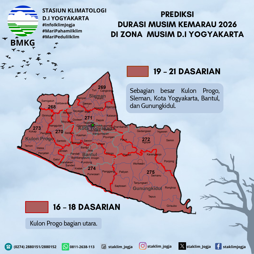 Prediksi Durasi Musim Kemarau 2026 Zona Musim D.I Yogyakarta