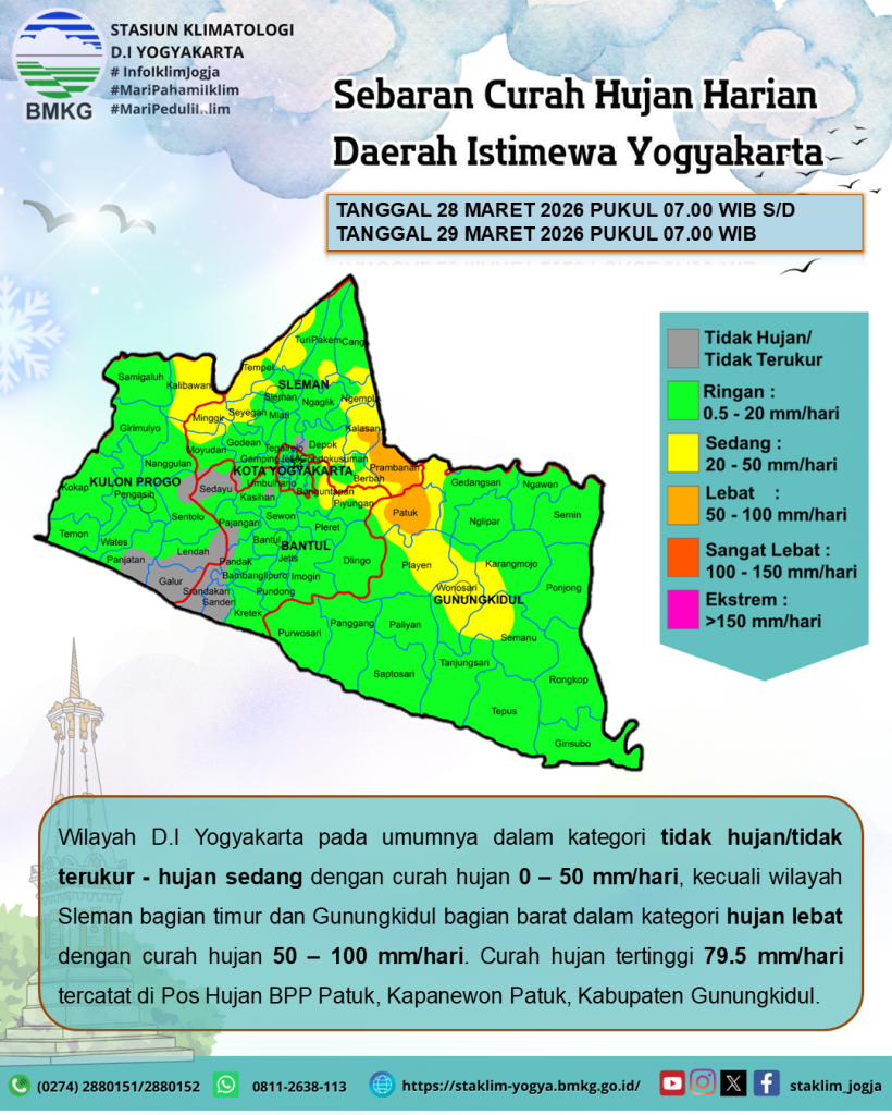 Analisis Curah Hujan Harian 29 Maret 2026