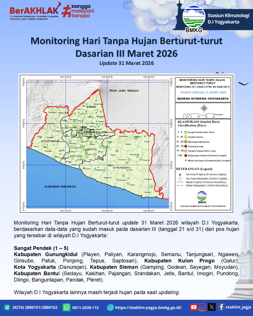 Monitoring Hari Tanpa Hujan Dasarian III Maret 2026