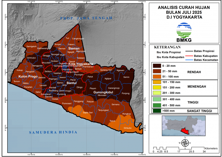 Analisis Curah Hujan Bulanan Juli 2025 Distribusi curah hujan bulan Juli 2025 Wilayah D.I Yogyakarta …