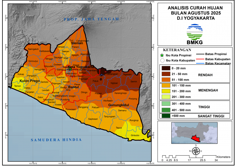 Analisis Curah Hujan Bulanan Agustus 2025 Distribusi curah hujan bulan Agustus 2025 Wilayah D.I Yogyakarta …