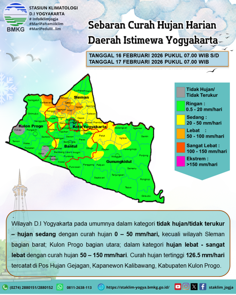 Analisis Curah Hujan Harian 16 Februari 2026
