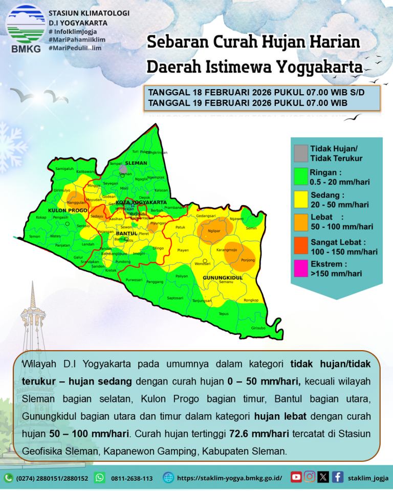 Analisis Curah Hujan Harian 18 Februari 2026